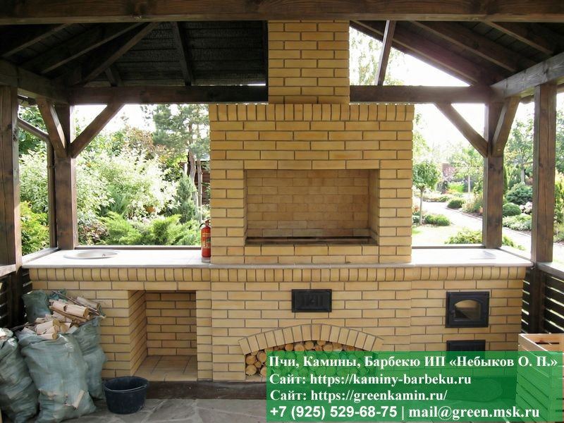 Угловой мангал-барбекю из желтого кирпича для дачи или загородного дома № 14. Фото и цены. У нас можно заказать строительство функционального углового мангала-барбекю для дачи из кирпича № 14 под ключ, недорого, с монтажом в Истре и Истринском районе Московской области. Строительство угловых кирпичных мангалов-барбекю на даче или загородном доме, по...