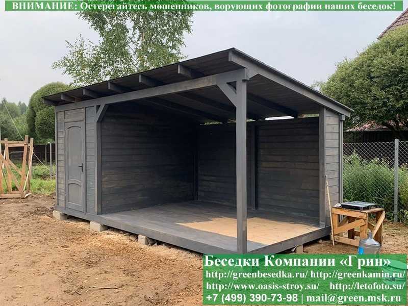 Беседка в стиле 'Лофт' 3х5 метров. Хозблок справа или слева. Кровля - Профлист: | 254 000 руб. |