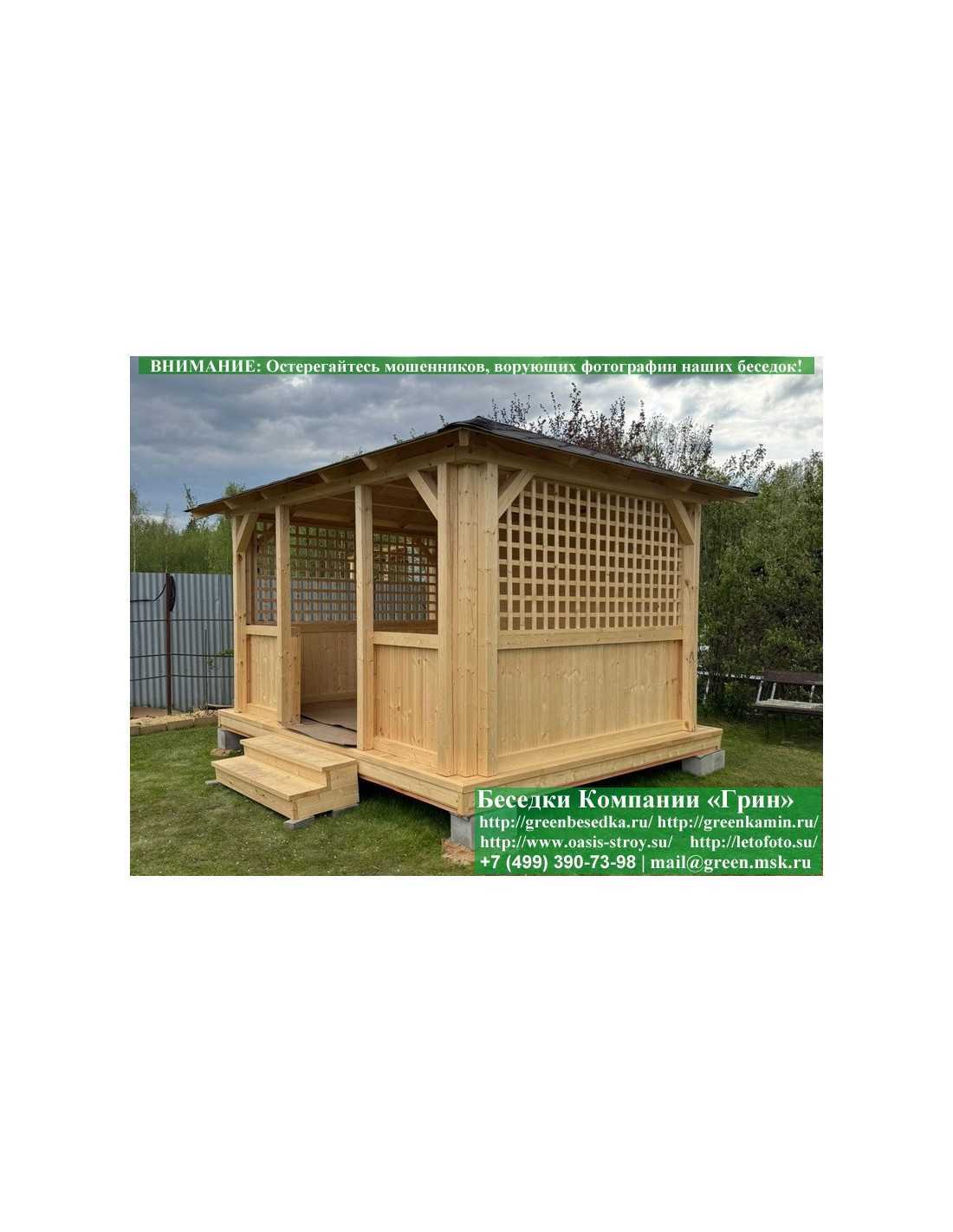 В стандартной поставке беседка идет с проемами под крышей, между беседкой и хозблоком и хозблоком и улицей. Стоимость работ зависит от размеров беседки. Данная цена указана за работу беседки размерами 3х5 метров.