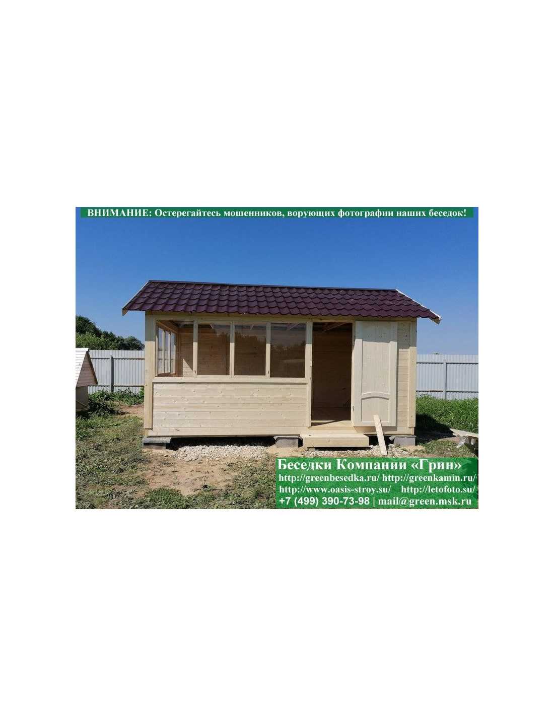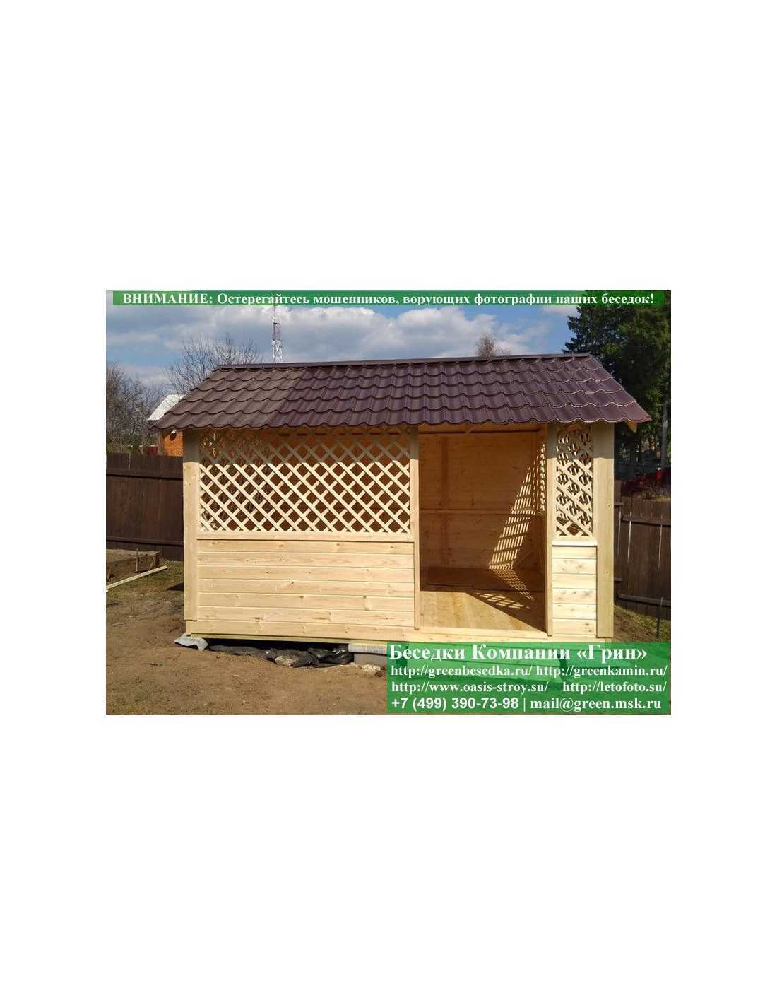 В стандартной поставке в виде кровли на крышу беседок, бытовок, хозблоков 3х3 метра кладется ондулин (мягкий шифер). Вы можете дополнительно заменить его на более надежную металлочерепицу.