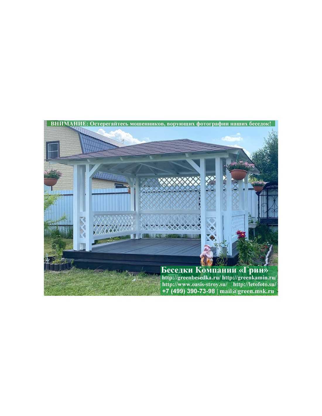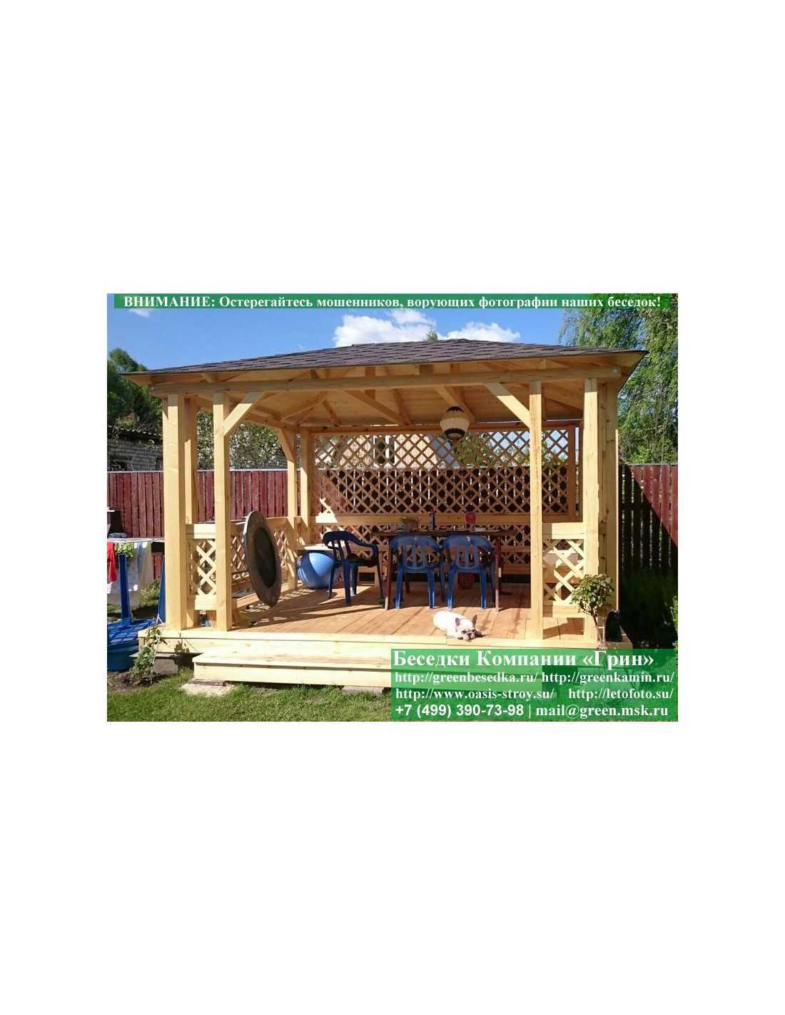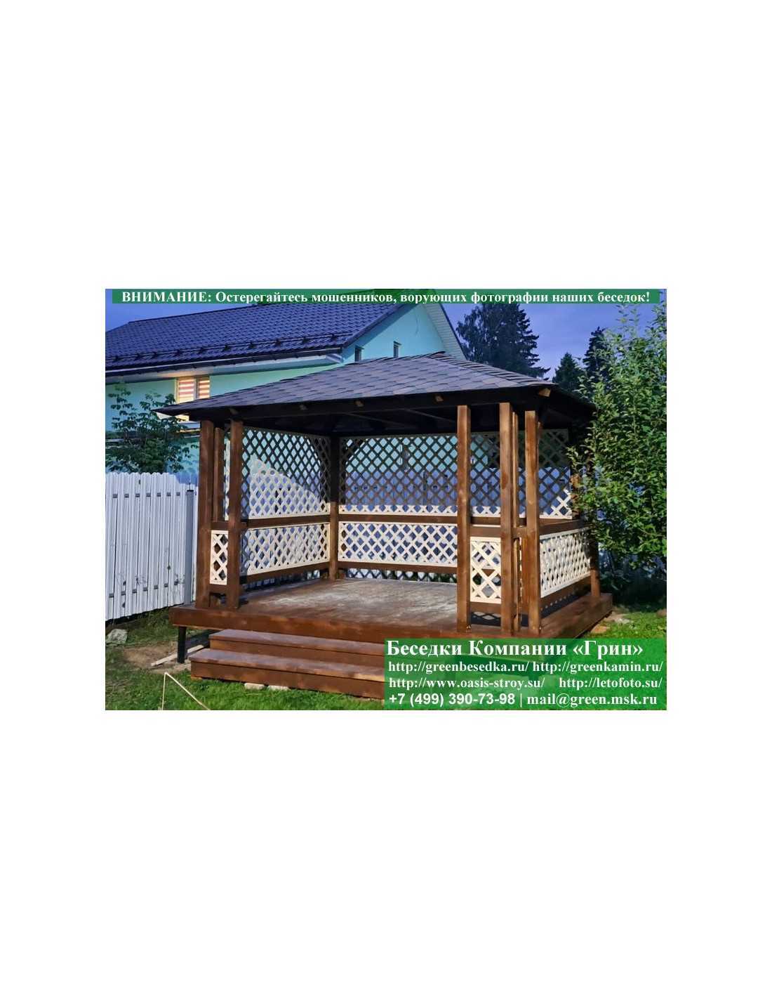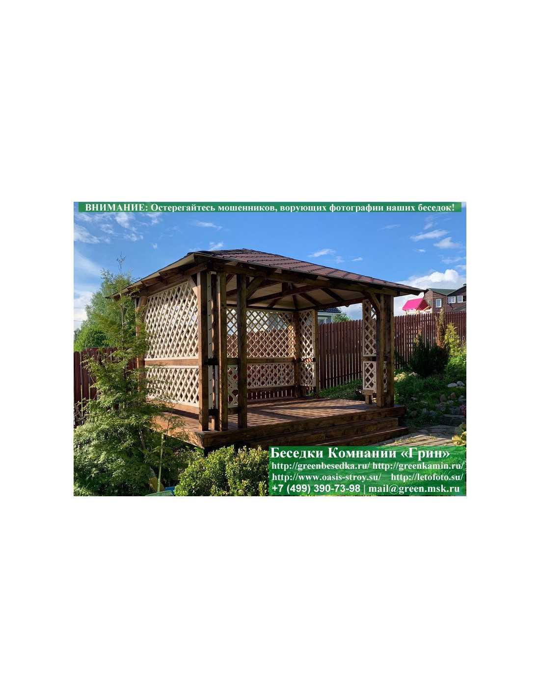 Удобная летняя деревянная беседка для дачи, загородного дома с широким входом 3х4 метра. Фото и цены. В интернет-магазине 'Грин Камин' вы можете купить практичную летнюю беседку из дерева с широким входом для дачи, сада 3х4 под ключ с монтажом в Ярославле и Ярославской области. Изготовление и строительство красивых деревянных летних беседок по готовым проектам размерами 3х4 метра возможно так же в Москве, Московской, Калужской, Тверской, Владимирской, Тульской, Ивановской, Брянской, Костромской, Орловской, Рязанской, Новгородской, Липецкой, Ленинградской и некоторых других областях.