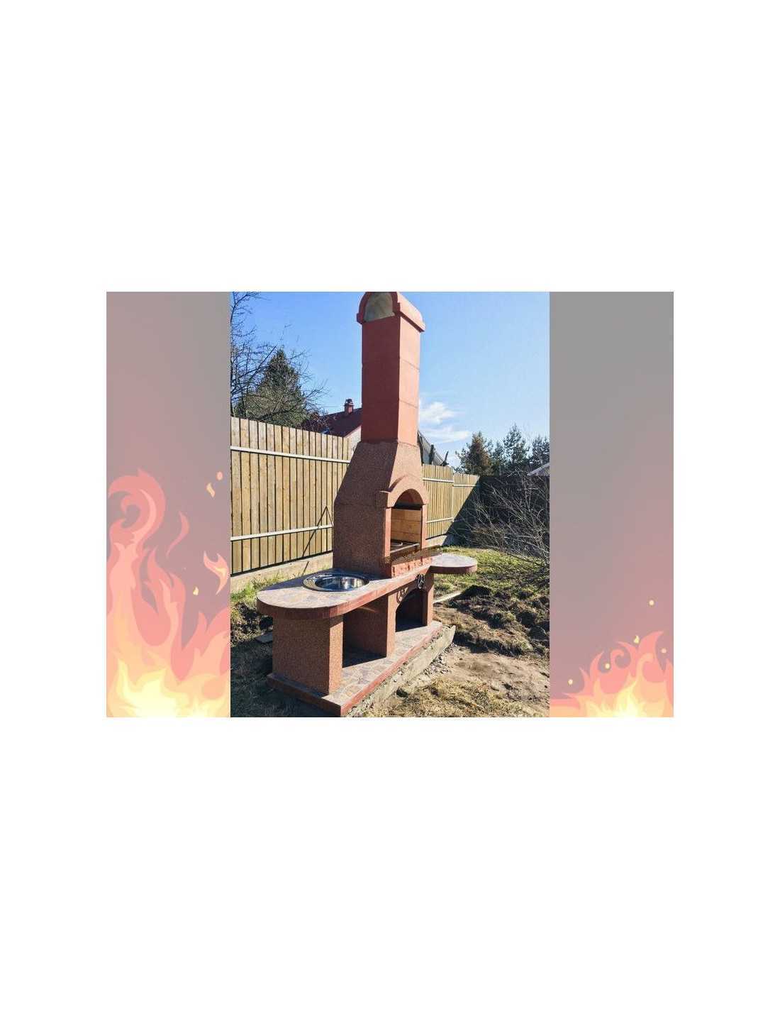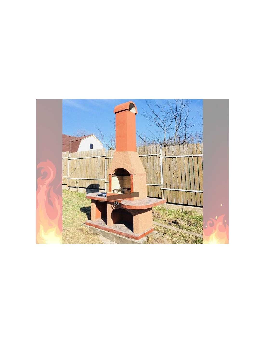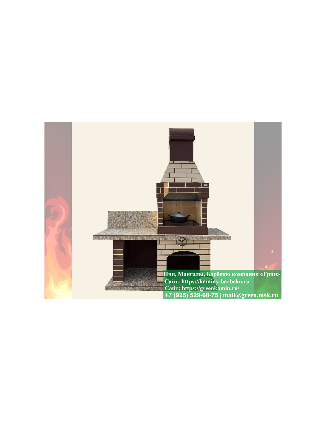 Печь барбекю облицована огнеупорным гибким кирпичом, столешница и нижняя подушка облицованы керамической плиткой.