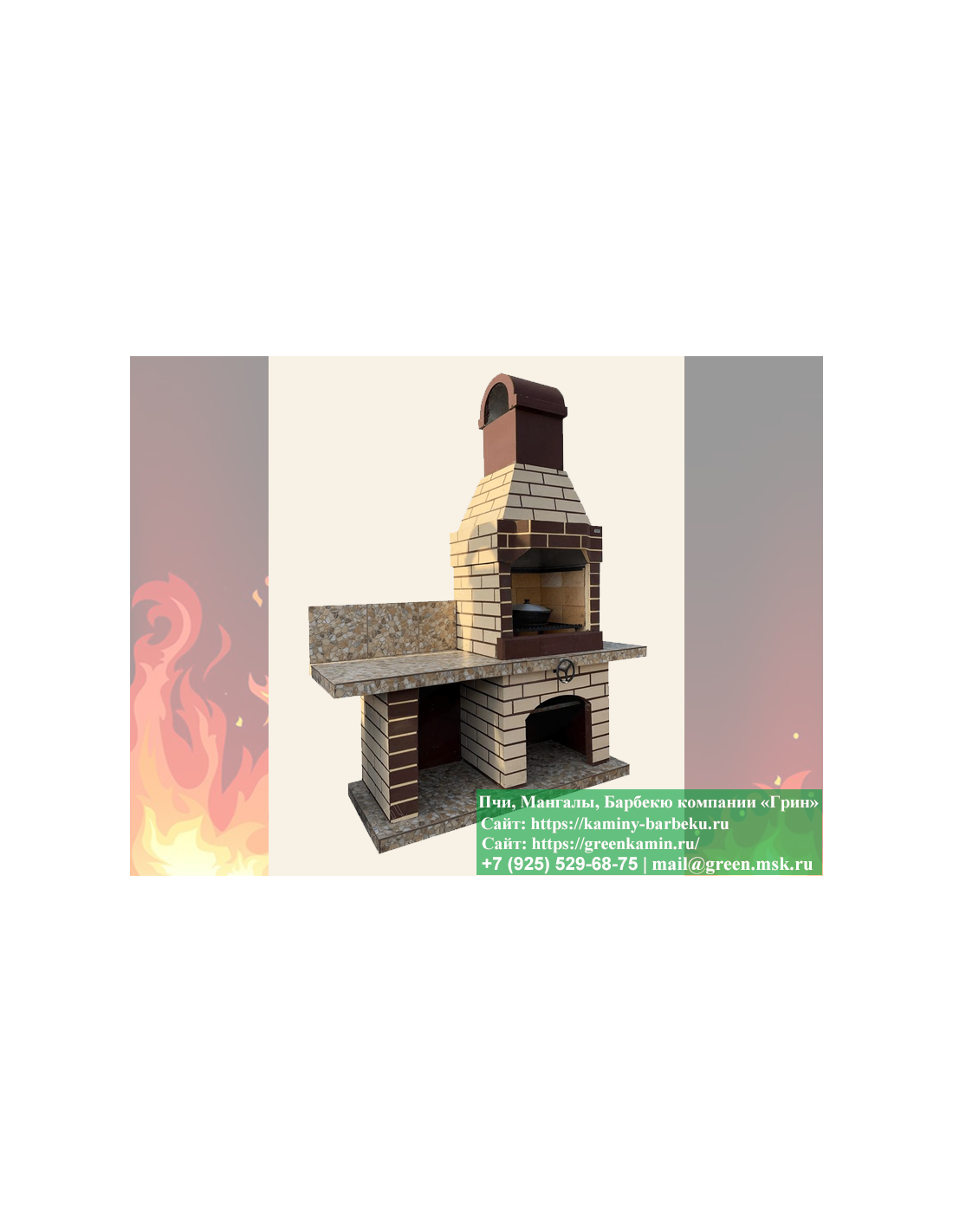 Выполнена из огнеупорного кирпича и армированного бетона. Снизу предусмотрено место для дров.