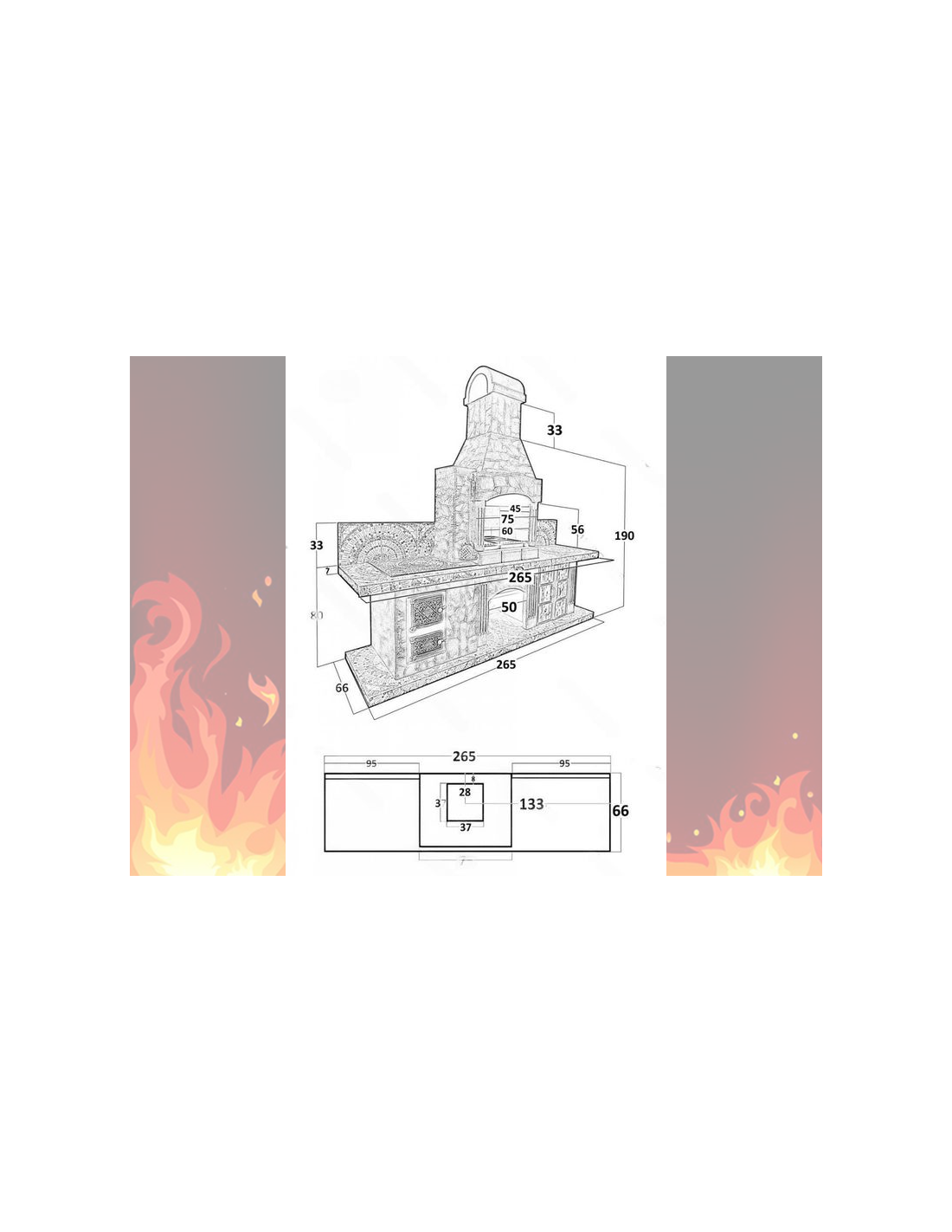 Внутри топки установлены огнеупорные шамотные кирпичи.