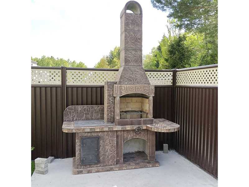 Печь-барбекю для улицы либо беседки замечательно подойдет для тех, кто любит собираться за одним столом семьей или с друзьями. Две столешницы и просторная топка рассчитаны на быстрое приготовление разных блюд.