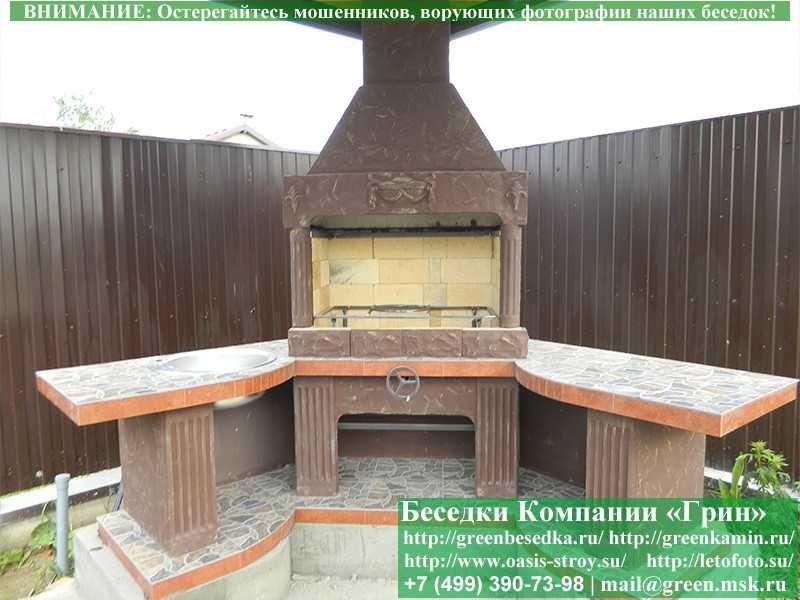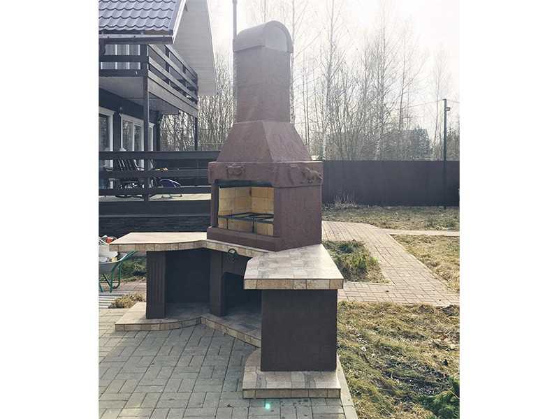 Одну из столешниц в такой печи-барбекю от производителя традиционно отдают под раковину. Если подвести к комплексу воду, получится практически полноценная мини-кухня, на которой удобно готовить даже несколько часов подряд.