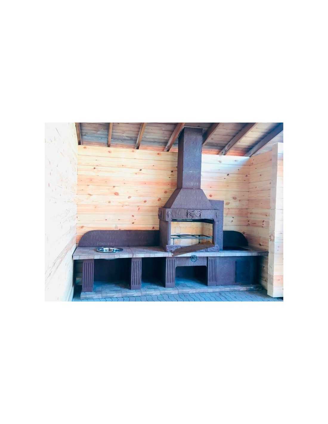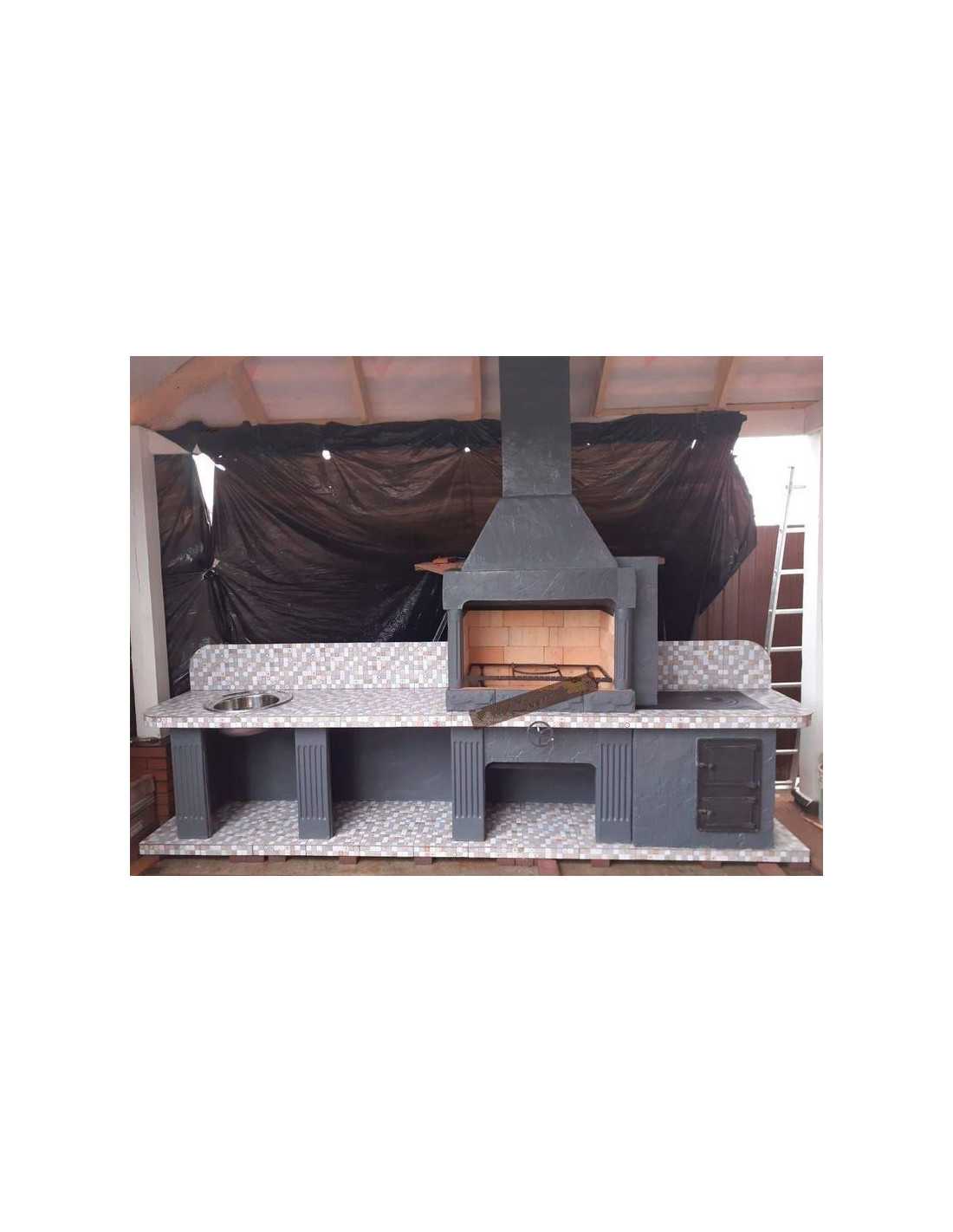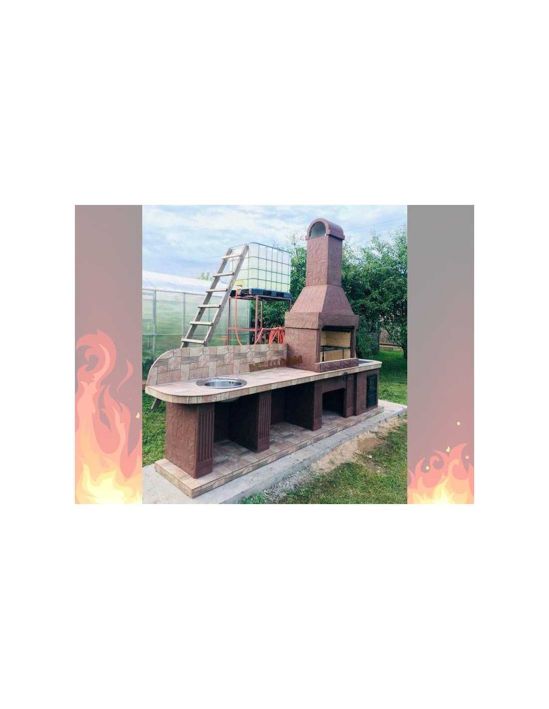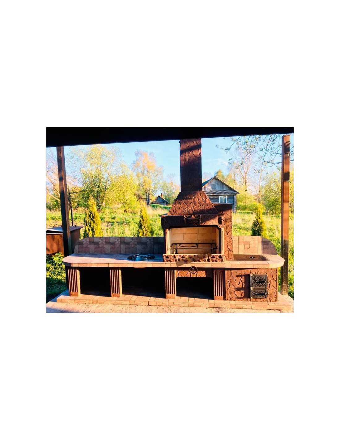 - Комплексная модель печи барбекю № 22 с увеличенной шириной столешницы, встроенной раковиной и жаровней;