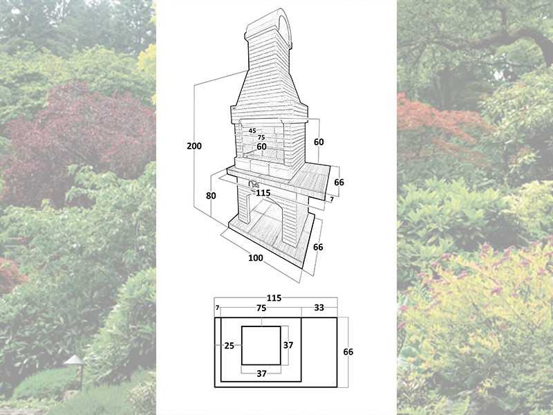 Для изготовления модели выбраны армированный бетон, качественный кирпич. Форма у конструкции классическая — у нее просторная топка и много места для хранения дров, угля.
