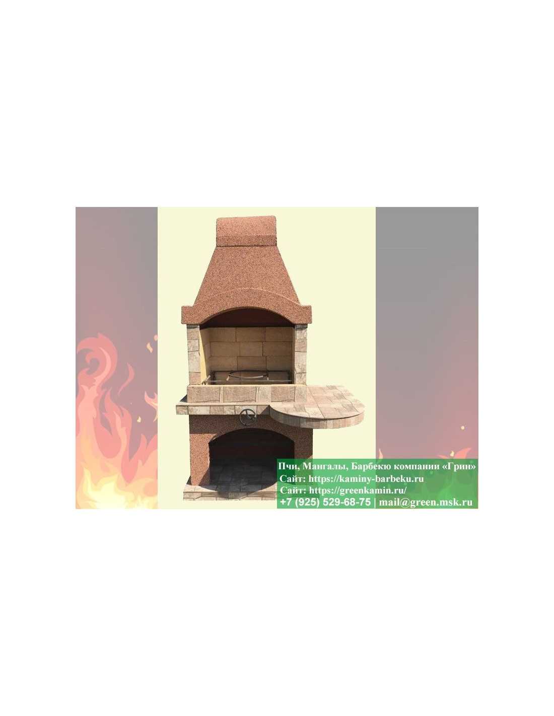 - Выполнена из огнеупорного кирпича и армированного бетона. Снизу предусмотрено место для дров;