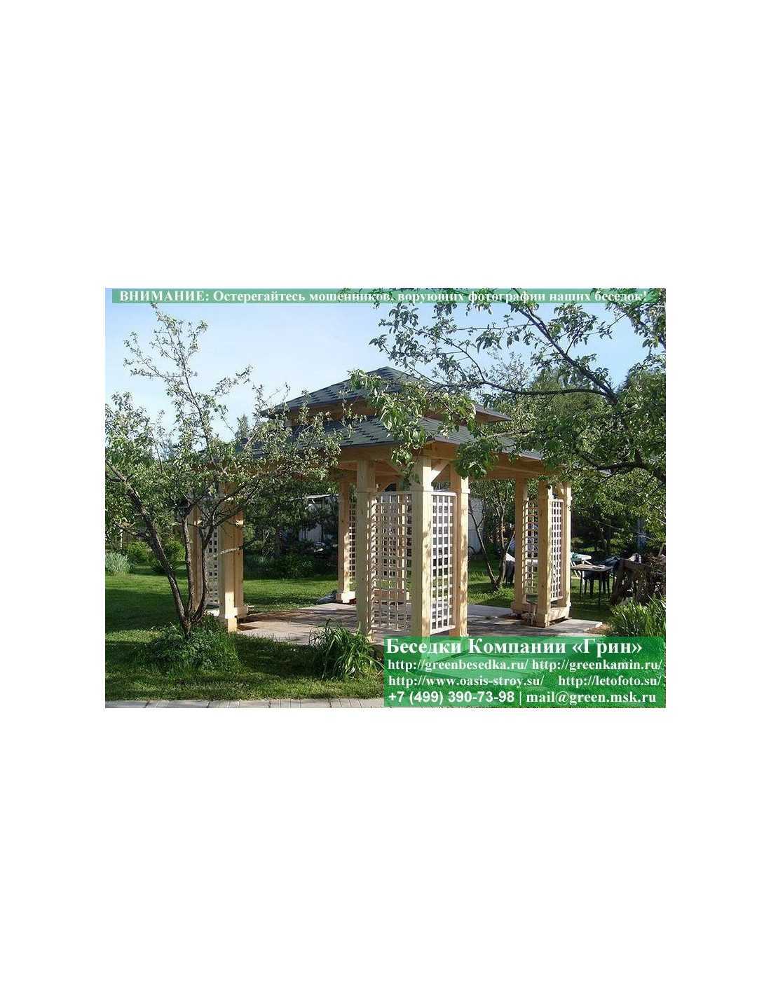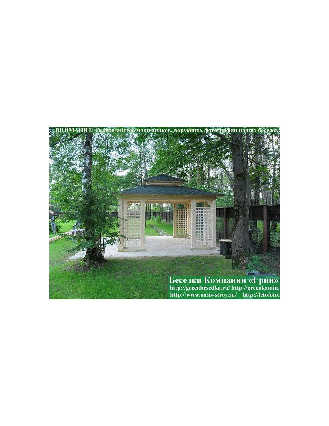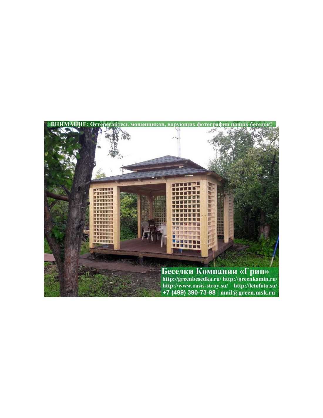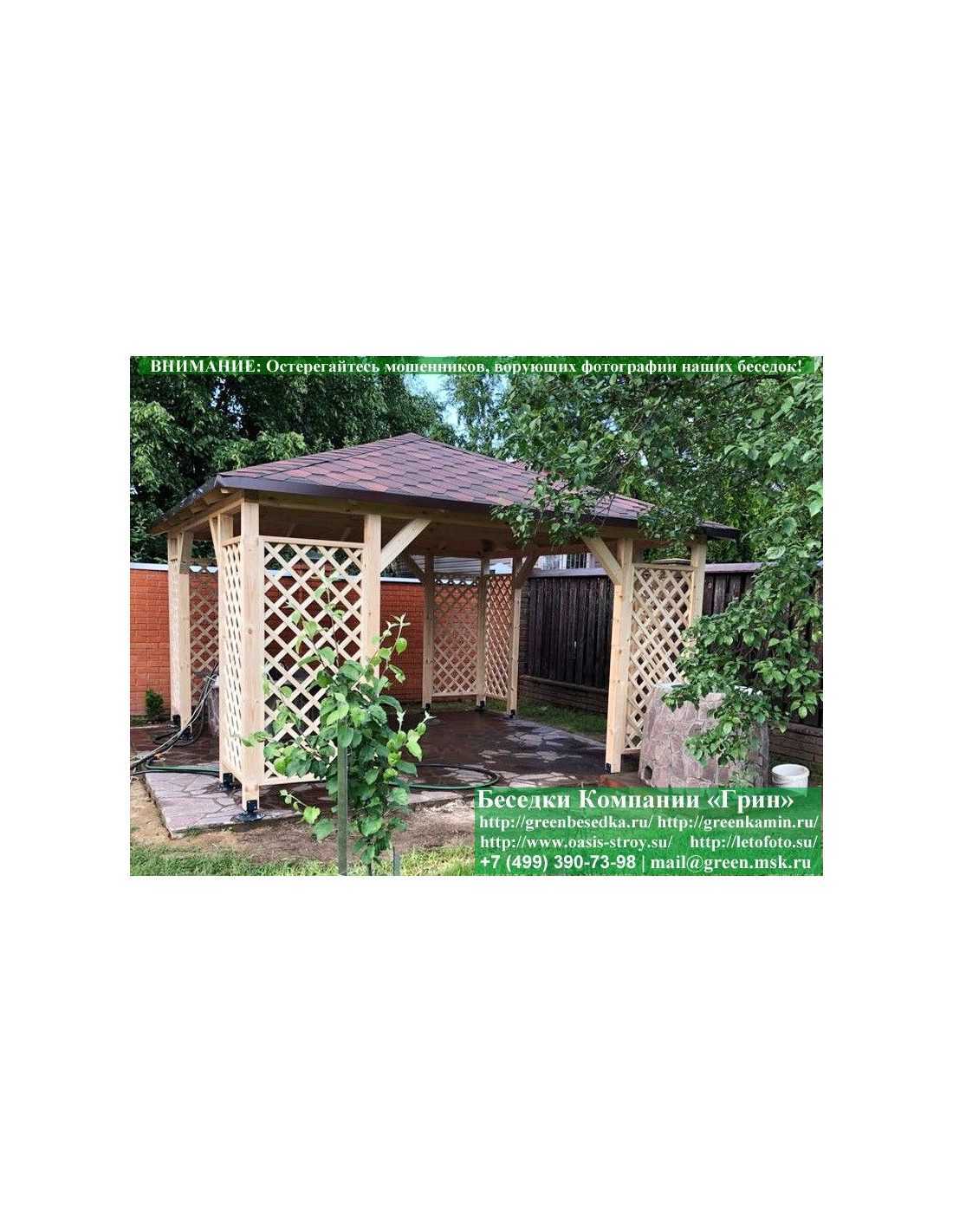 Беседка изготавливается в 2-х вариантах. С полом и без пола. При установки беседки с полом используется строганая доска 35 мм;