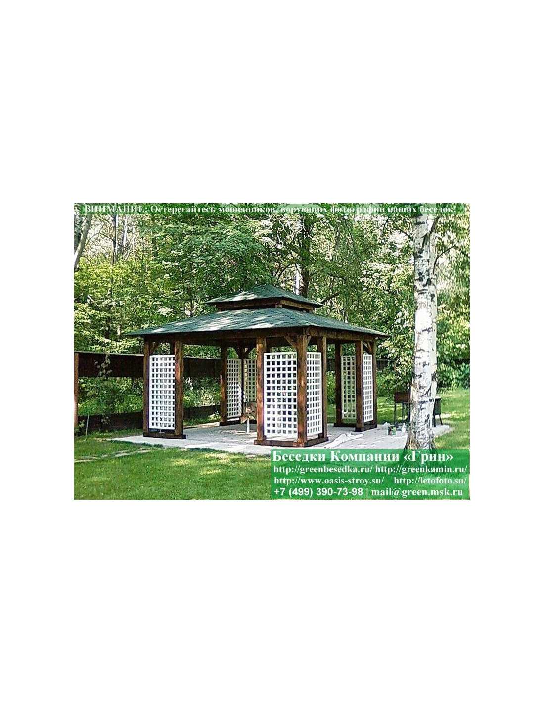 Беседка "Шатер для дачи 4х4" изготавливается из сосны, в 2-х вариантах, с полом и без пола. С двухъярусной крышей с воздушным клапаном. Крышу можно заменить на сплошную одноярусную. При строительстве беседок используется сухой материал камерной сушки. Установка беседки производится на подготовленную площадку залитой бетоном. Если у вас нет готовой бетонной подушки, то мы можем ее подготовить. В качестве несущих стоек используется строганый брус 90х90 или 140х140 мм. На крышу беседки укладывается мягкая битумная черепица: Коричневых, Зеленых, Бордовых, Серых цветов. Стандартно изготавливается беседка-шатер открытая с 4-х сторон, но любую сторону можно закрыть перголой (решеткой) до потолка. Срок изготовления и монтажа беседки на участке 5-10 дней. Беседки поставляются в не крашеном виде. Возможна покраска беседок.