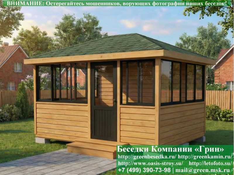 Надежная деревянная закрытая застекленная беседка с раздвижными алюминиевыми окнами для дачи, загородного дома 3х4 метра. Фото и цены. В интернет-магазине 'Грин Камин' вы можете купить прочную закрытую застекленную беседку из дерева с раздвижными алюминиевыми окнами для дачи, сада, отдыха 3х4 метра под ключ с монтажом во Владимире и Владимирской области. Изготовление и строительство полезных деревянных закрытых остекленных беседок с раздвижными алюминиевыми окнами по готовым проектам размерами 3х4 метра возможно так же в Москве, Московской, Калужской, Тверской, Рязанской, Тульской, Ярославской, Ивановской, Брянской, Костромской, Смоленской, Орловской, Новгородской, Липецкой, Ленинградской и некоторых других областях.