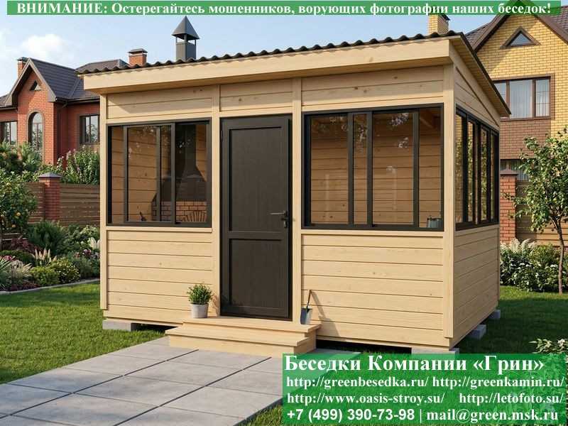 Беседки, бытовки, хозблоки поставляются в не крашеном и не обработанном виде. Рекомендуется сразу же их обработать антисептиком или покрасить;