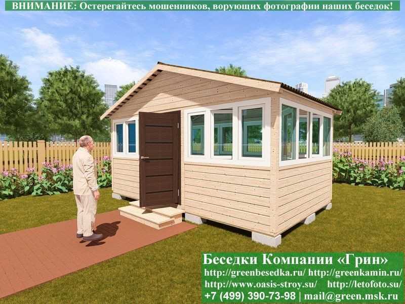 Беседки, бытовки, хозблоки поставляются в не крашеном и не обработанном виде. Рекомендуется сразу же их обработать антисептиком или покрасить;