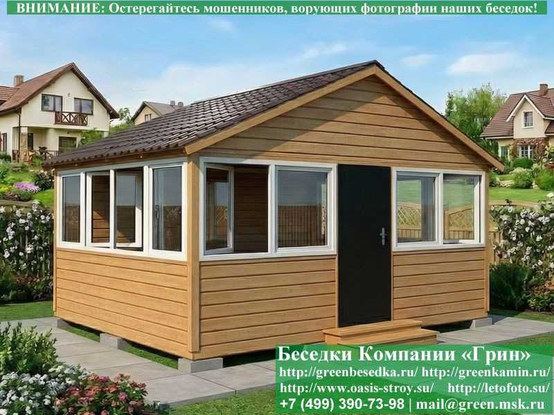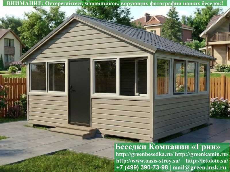 Надежная закрытая застекленная беседка из дерева для дачи, загородного дома с пластиковыми окнами 4х5 метров. Фото и цены. В интернет-магазине 'Грин Камин' вы можете купить прочную деревянную закрытую застекленную беседку для дачи, сада, отдыха с пластиковыми окнами 4х5 под ключ с монтажом в Калуге и Калужской области. Изготовление и строительство практичных деревянных закрытых остекленных беседок, павильонов с пластиковыми окнами по готовым проектам размерами 4х5 метров возможно так же в Москве, Московской, Тверской, Брянской, Рязанской, Тульской, Владимирской, Ярославской, Ивановской, Костромской, Смоленской, Орловской, Липецкой, Ленинградской и некоторых других областях.